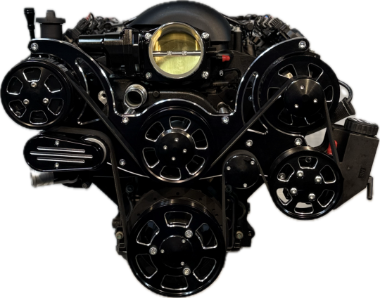 Billet Accessory Drive Kit – includes A/C compressor, GM Type II power steering pump, 140-amp alternator, and water pump (all with lifetime warranty)